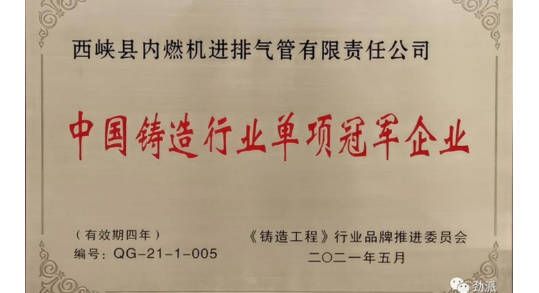 西排公司榮獲“中國鑄造行業(yè)單項冠軍企業(yè)”