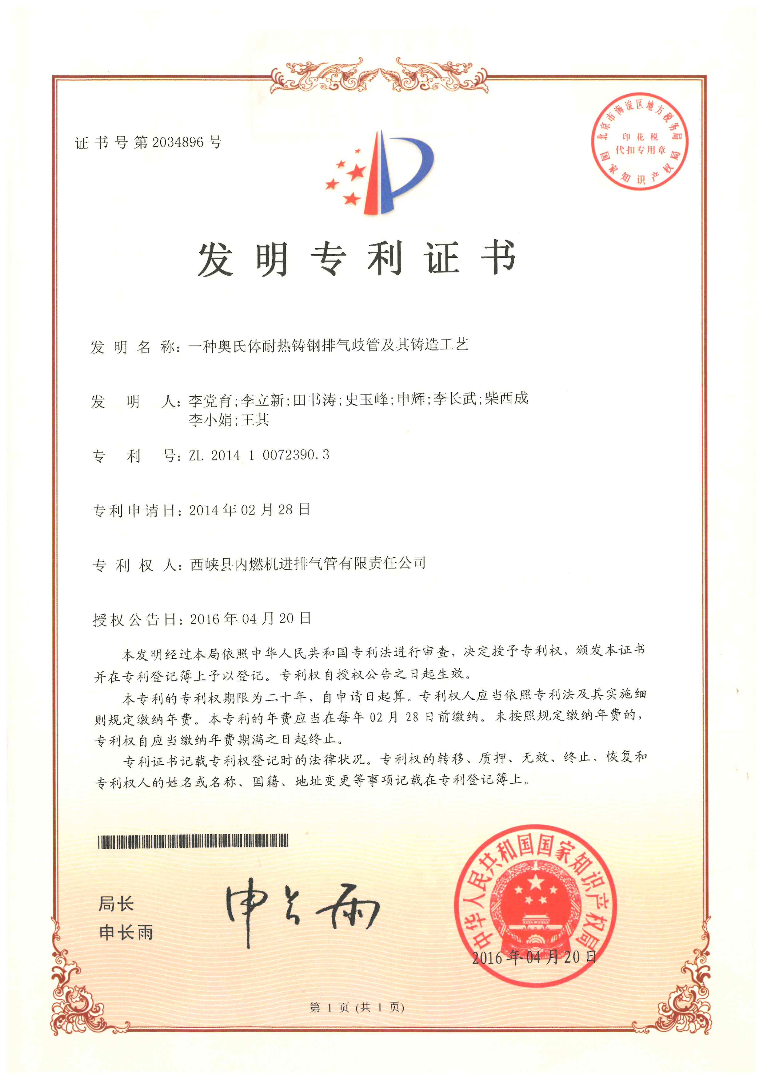 一種奧氏體耐熱鑄鋼排氣歧管及其鑄造工藝
