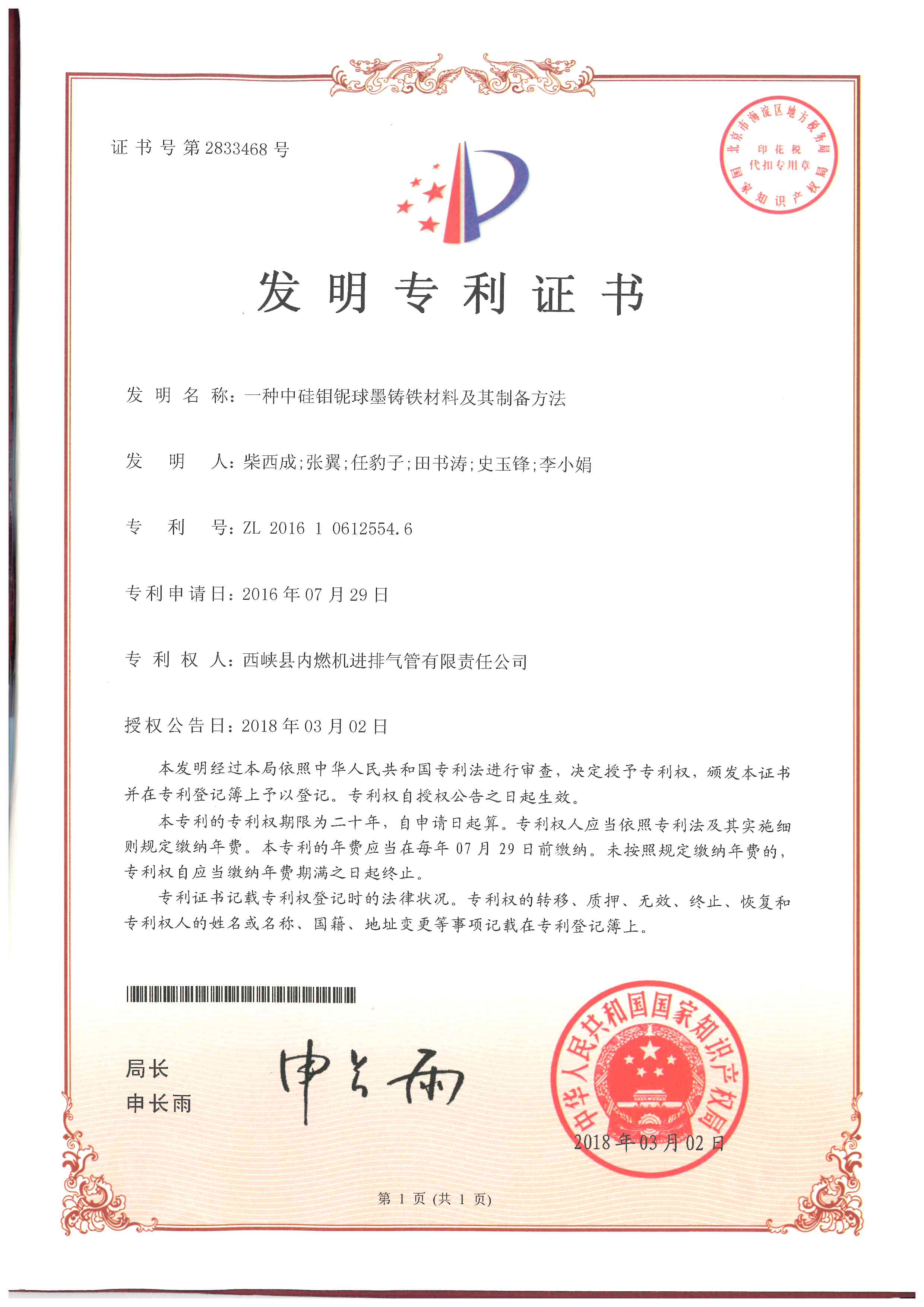 一種中硅鉬鈮球墨鑄鐵材料及其制備方法
