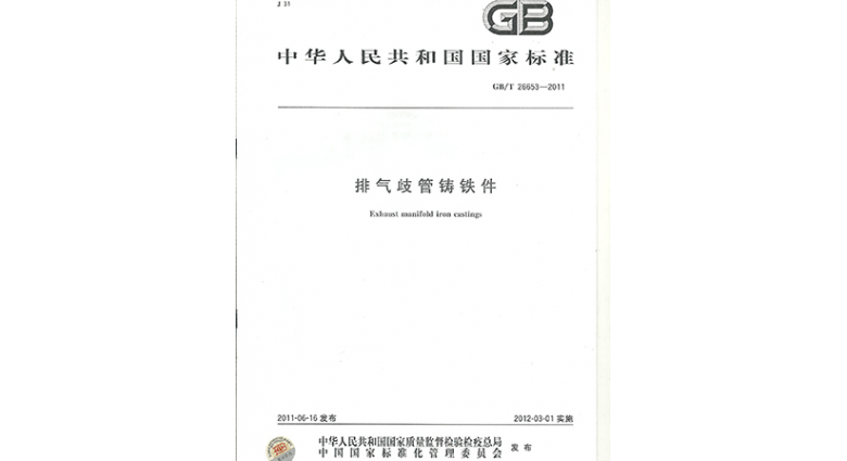 主持制定《排氣歧管鑄鐵件》國家標準