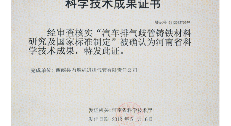 汽車排氣歧管鑄鐵材料研究及國家標準制定
