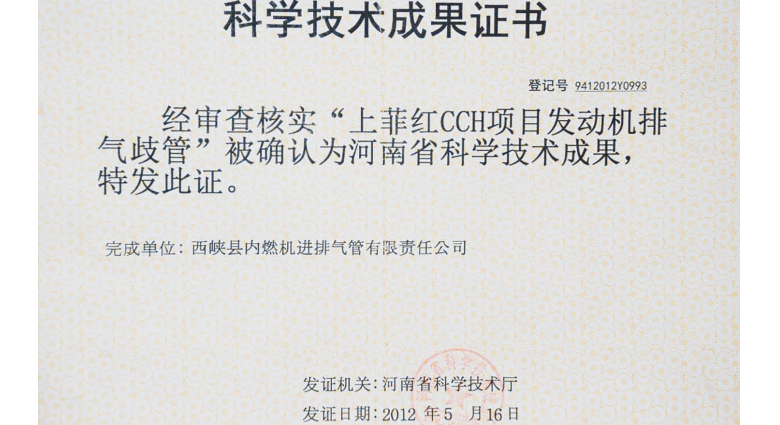 上菲紅CCH項目發動機排氣歧管
